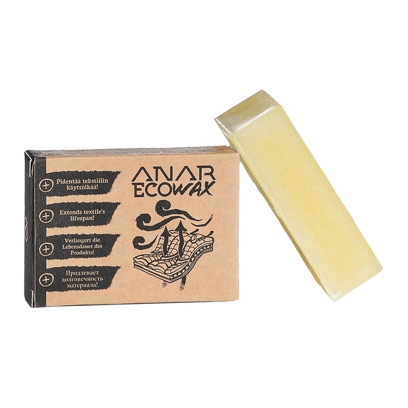 Pidennä Anar Eco Wax -käsiteltyjen tekstiilien käyttöikää! Tekstiilivahan rakenne pitää tekstiilin hengittävänä, vettähylkivänä ja kulutusta kestävänä. Ekologinen vaha on valmistettu parafiinista ja mehiläisvahasta.