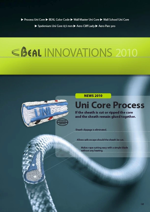 Turvallisuudeltaan täysin uudenlaiselle tasolle sijoittuva Uni Core työ/laskeutumisköysi, joka säilyttää notkeutensa pitkäaikaisessakin käytössä. Työ- ja pelastusköysien uusi tuleva standardi.