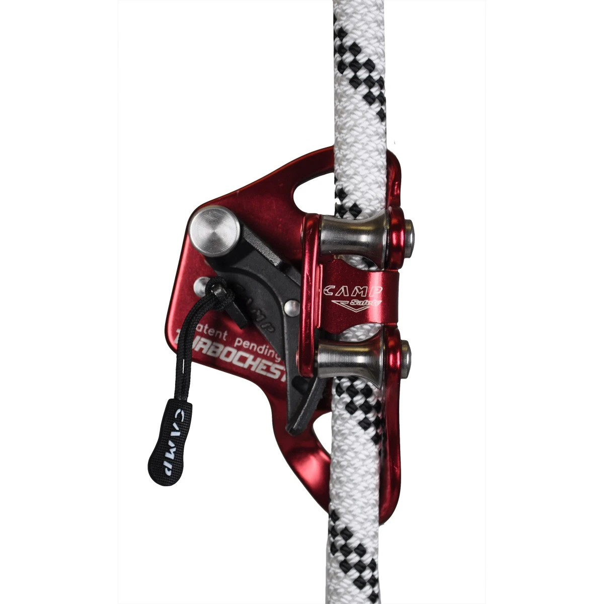 Erinomainen nousuvarmistin käytettäessä yhden köyden tekniikkaa. Turbo C hest nousuvarmistimen rullat minimoivat kitkaa, joka vähentää köyden kulumista.