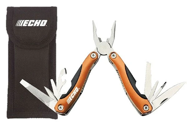 Monitoimityökalu, jossa useita eri työkalua. Kovaa käyttöä kestävä vankka alumiinirunko. Terät ruostumatonta terästä. Vyökotelo valmistettu kestävästä kankaasta.