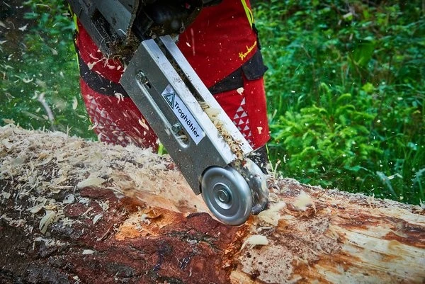 Ketjuvetoinen Eder kourujyrsin on moottorisahaan liitettävä lisälaite puun jyrsintään. Neljän pyöröterän ansiosta työjälki on erittäin hyvä. Tukeva ohjauskara takaa helpon ja turvallisen käsiteltävyyden, sekä tehokas lastunpoisto varmistaa ettei lastuja jää häiritsemään työstöä.