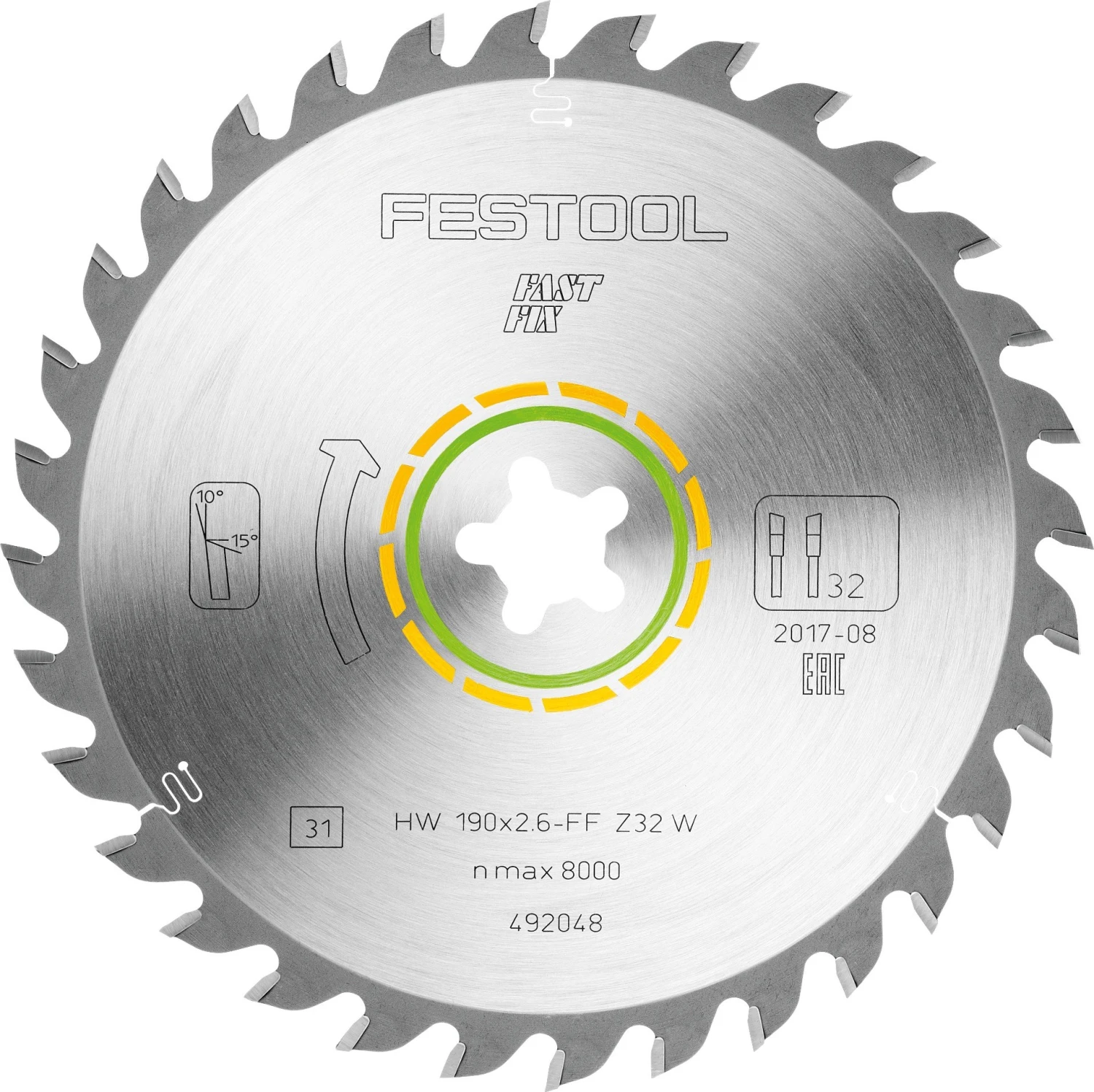- Festoolin värikoodauksen avulla oikea sahanterä löytyy nopeasti: keltainen väri viittaa puun työstöön