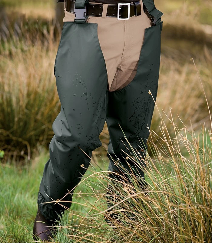 Nopeasti puettavat oliivin väriset sadelahkeet, joissa kuminauhat lahkeiden suussa. Sopii sekä miehille että naisille. Mukana kätevä vyöhön kiinnitettävä laukku.