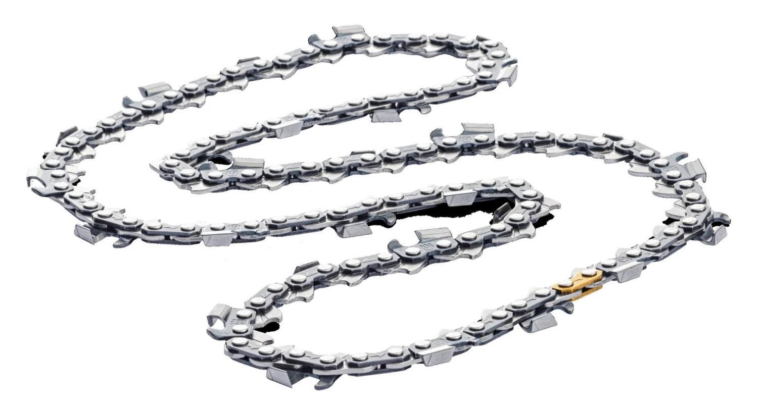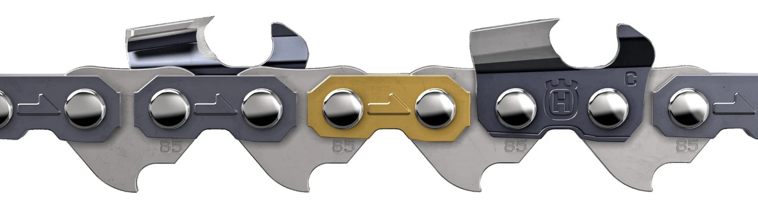 Erinomainen voitelu on varmistettu lenkeissä olevilla pienillä nuolenmuotoisilla kanavilla, joita pitkin öljy siirtyy teräketjuun sahauksen aikana.