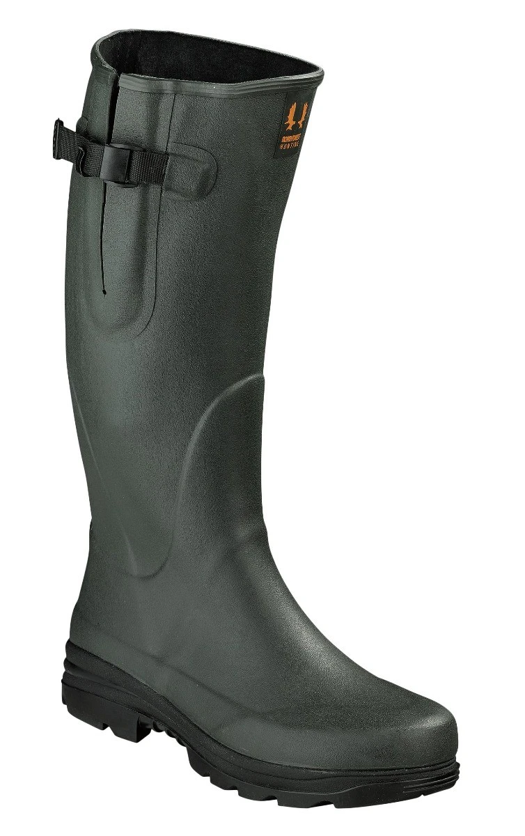 100 % :sta luonnonkumista valmistetut kumisaappaat niin vapaa-aikaan kuin työhön. Saappaissa on säädettävä pohjeosan leveys, joka takaa erinomaisen käyttömukavuuden. Pohjan kuviointi on pitävä ja kantapäässä on iskunvaimennus. Saappaissa on miellyttävän tuntuinen Jersey-puuvillavuori.