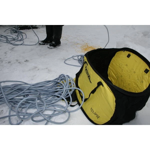 Eclipse kuljetetaan kokoon taitettuna pienessä kuljetuspussissa, joka mahtuu täydellisesti Petzl Bucket 25L ja 35L varustesäkkien sisään, muiden varusteiden päälle. Heittoliinat ja heittopainot voi säilyttää korin sisällä kun se suljetaan kuljetusasentoon. Kori otetaan käyttöön avaamalla kuljetuspussin vetoketju ja se aukeaa automaattisesti tilavaksi, itsestään pystyssä pysyväksi pyöreäreunaiseksi koriksi. Kaksoispohjan ansiosta kaksi erillistä heittoliinaa voidaan säilyttää korissa ilman riskiä sotkeentumisesta, pohja voidaan nostaa ylös jolloin se muodostaa koriin väliseinän ja voidaan valita heti käyttövalmiina oleva sopivan pituinen heittoliina. Sisäpuolella kaksi kiinnityspistettä heittoliinojen päille, jotta narut pysyvät erillään. Neljä erillistä säilytystaskua heittopainoille. Pakkautuu hetkessä takaisin kuljetuspussiin. Korin kyljessä kuvalliset taitteluohjeet. Kuljetuspussin kyljessä velco-tarralla suljettava ikkunallinen yksilöintitasku.