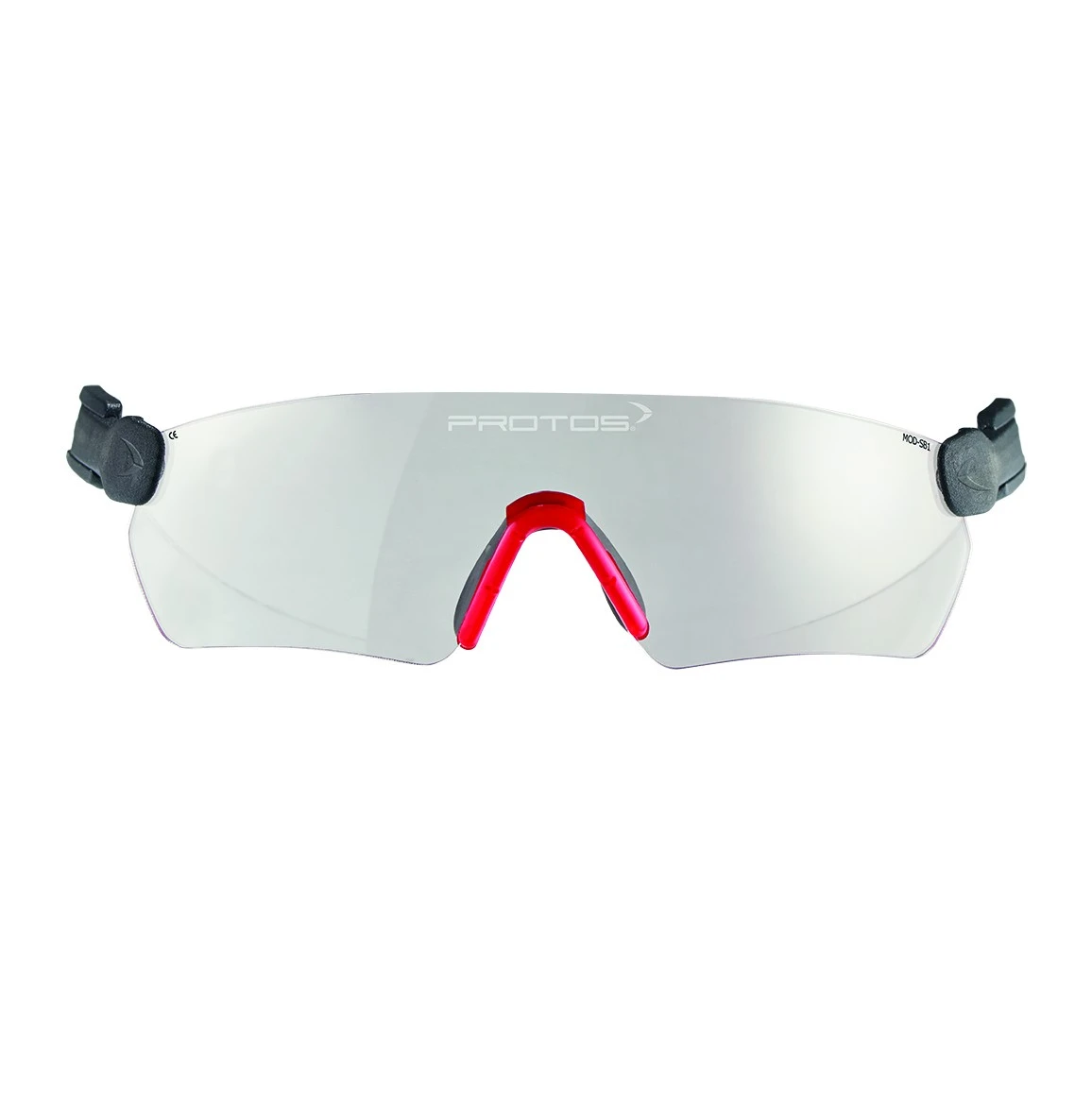 Kevyet ja kestävät Protos-kypäriin integroitavat suojalasit kolmella erilaisella linssillä. Pehmustettu nenäosa. EN170 standardin mukainen UV-suojaus sekä EN172 standardin mukainen suojaus auringonvalolta. Huurtumaton.