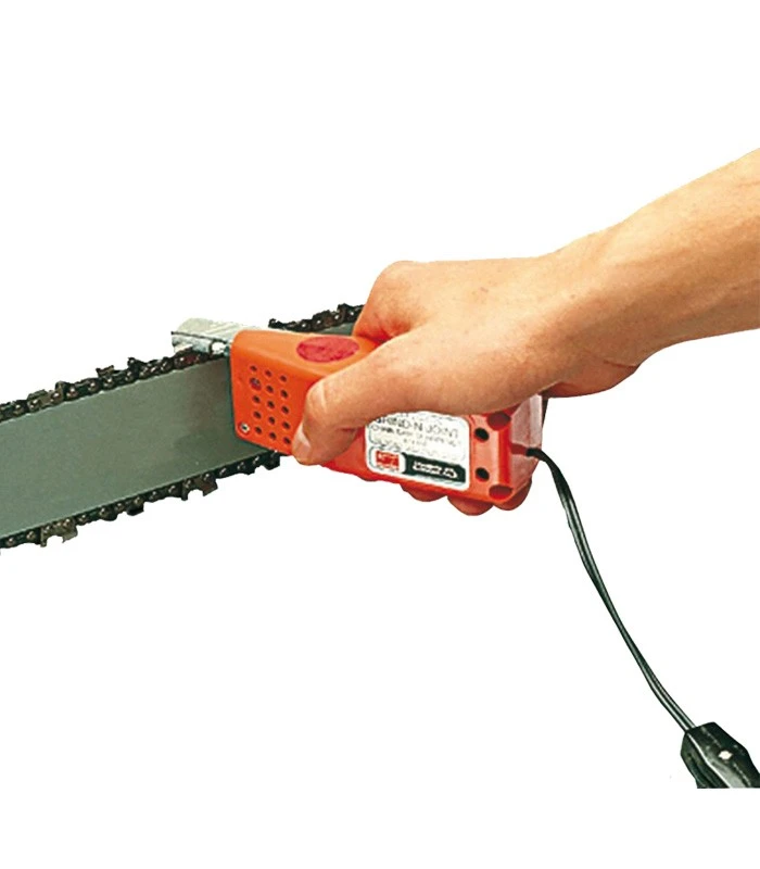 Sähköteroitin 12 V akkuliitännällä. Nopea ja vaivaton tapa teroittaa ketju. Toimitetaan 404″ ketjulle sopivan hiomapuikon kanssa.
