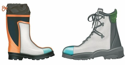 Viiltosuojaus kengissä ja saappaissa ovat jalan päällä, nilkassa, säären alaosassa ja kengän kielessä.