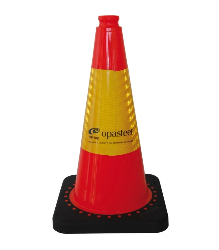 Laadukas punakeltainen sulkukartio kiinteällä kumijalalla ja R2-heijastinkalvolla.