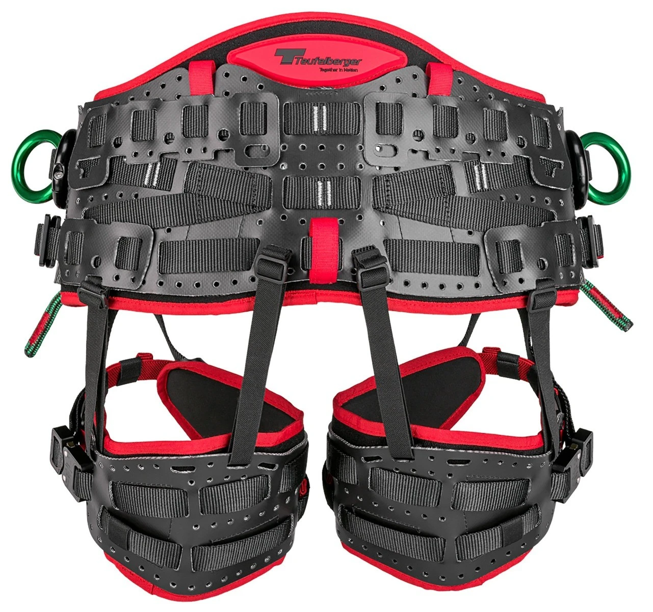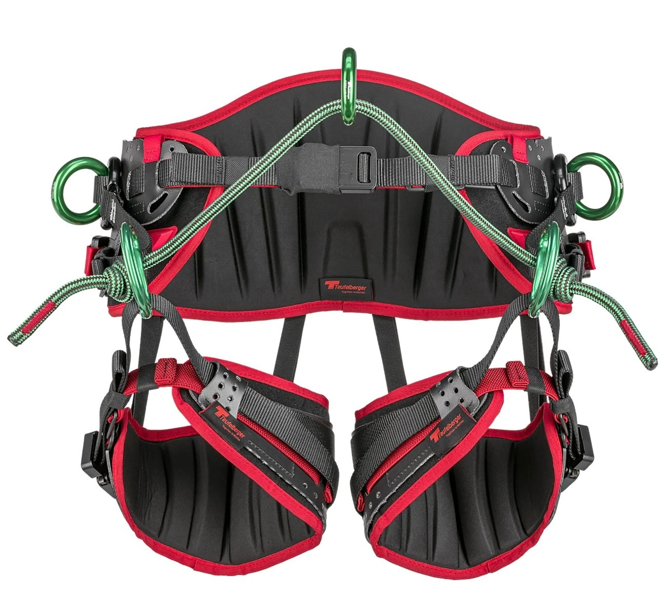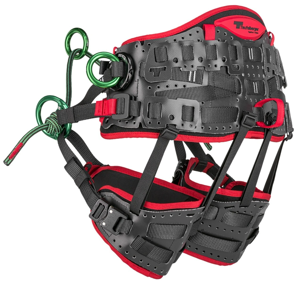 Yli kahden vuoden kehitystyön aikana Treemotion Prossa on pyritty ottamaan huomioon kiipeilijöiden eroavaisuudet niin kiipelityylissä kuin ruumiinrakenteissakin, ja Teufelberger teki Treemotion Pro valjaista laajasti säädettävät, sekä niitä saa kolmessa eri koossa. Molemmin puolin solkea säädettävä lantiovyö, sekä korkeussuunnassa että ympärysmitaltaan säädettävät reisilenkit takaavat yksilöllisen istuvuuden jokaiselle kiipelijälle. Itse lantiovyön alla on joustava apuvyö joka helpottaa valjaiden pysymistä päällä jos haluat säätää itse lantiovyötä ja samanlaiset joustavat apuvyöt löytyvät myös reisilenkeistä. Uudet toppaukset niin selässä kuin reisilenkeissäkin takaavat erinomaisen mukavuuden ja pystyt työskentelemään valjaissa todella pitkiä aikoja. Treemotion pro valjaissa on haluttu panostaa myös valjaiden pitkään elinkaareen ja valjaissa onkin 10 vuoden käyttöikä valmistuspäivästä lähtien. Varaosia on saatavilla valjaisiin laajasti, joten enää ei tarvitse hylätä valjaita jos esimerkiksi lantiolenkki kuluu käyttökelvottomaksi tai hajoaa. Vyötärölenkit ovat avattavisssa ja vaihdettavissa ja niitä voi halutessaan käyttää lenkkeinä sillan kiinnitykseen. Valjaissa on todella paljon kiinnityspisteitä esimerkiksi karbiineille tai lenkeille työkalujen ja muiden tarvikkeiden kiinnittämistä varten.