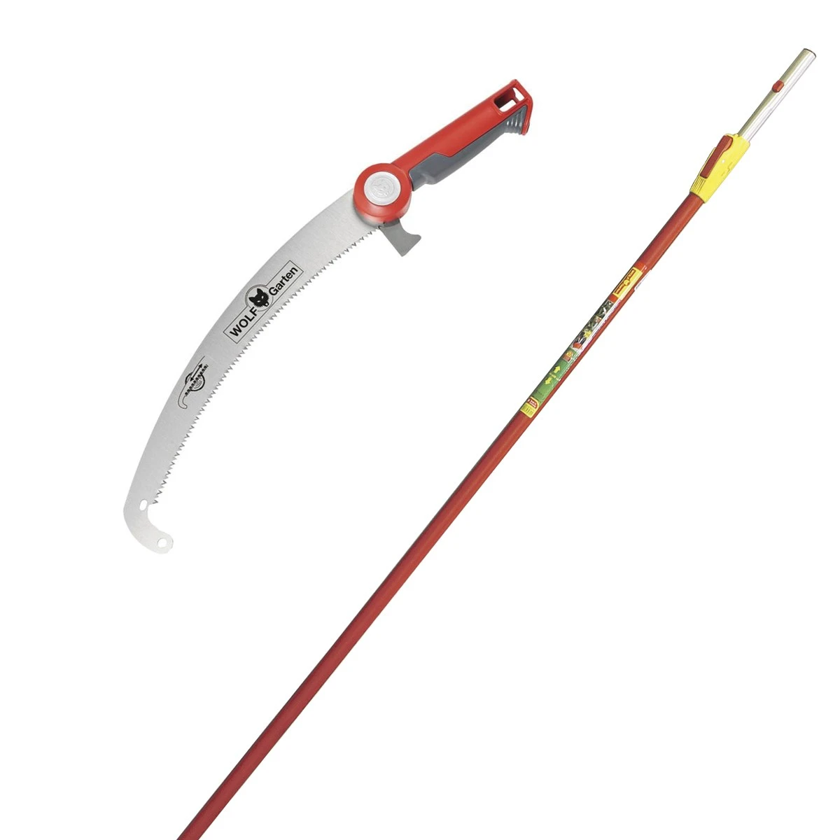 Kaareva koukkupäinen oksasaha korkealaatuisella sahanterällä. Sopii Wolf Garten teleskooppivarsiin (ZM-V3 tai ZM-V4), joihin se on helppo kiinnittää ja irroittaa. Oksasahassa on myös kädensija, joten sahaaminen onnistuu ilman teleskooppivartta.